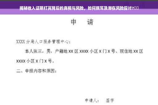 在当今社会,收入证明在多个场合成为必备文件,无论是贷款申请、信用卡办理还是求职过程,它都是评估个人信用和还款能力的重要依据,关于能否提高收入证明上的金额,背后隐藏着真相与风险,本文将深入探讨收入证明的基本构成、提高收入证明的途径与风险,以及真实反映收入水平的建议和注意事项。