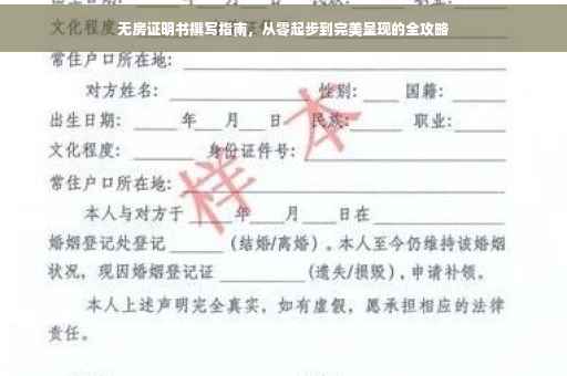 撰写无房证明书虽然看似简单,但其中包含了诸多细节和注意事项,通过本文的介绍,希望能帮助大家更好地了解如何撰写一份规范、有效的无房证明书,在实际生活中,请根据具体需求和规定进行调整和完善,确保信息的真实性和准确性,希望每位读者都能顺利开具无房证明书,顺利应对各种生活场景。