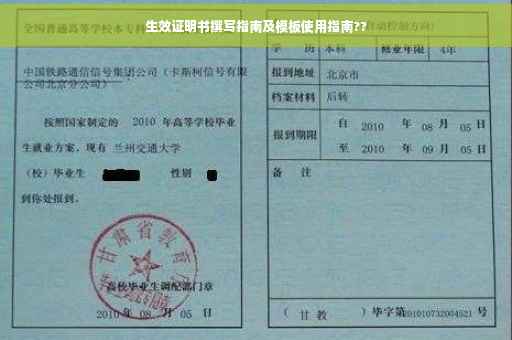 摘要:本指南旨在帮助撰写生效证明书,提供模板供参考。通过简洁明了的格式和内容要求,确保生效证明书具有法律效力。内容包括证书标题、颁发机构、当事人信息、生效事项、生效时间和法律效力的声明等要素。撰写时需注意语言准确、清晰,遵循法律文件的基本要求。使用本指南,轻松完成生效证明书的撰写。