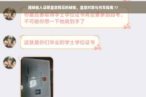 摘要:本文将揭示收入证明盖章背后的秘密,包括需要谁盖章以及正确的写法。通过深入了解,您将明白收入证明的重要性以及盖章过程中需要注意的细节。本文旨在帮助读者避免在收入证明过程中出现问题,确保证明文件的真实性和有效性。