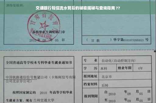 随着移动互联网的普及,银行业务与手机紧密相连,交通银行短信流水作为银行业务的重要组成部分,承载着客户交易信息的通知功能,很多人对交通银行短信流水并不十分了解,本文将为您深入解析交通银行短信流水的相关内容。