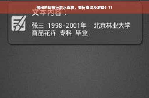 揭秘购房时银行流水的真相,你是否了解?本文将为你揭示如何查询银行流水,助你购房过程更加顺利。从细节出发,带你了解银行流水的重要性及其查询方法,让你在购房过程中避免陷阱,明智决策。准备好了吗?一起了解银行流水的真相吧!