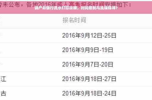 摘要:销户后的银行流水打印攻略分享,提供详细步骤和注意事项。解答销户后多久可以到银行打印流水的常见问题,帮助用户了解相关规定和流程,以便顺利获取银行流水记录。确保个人或企业金融事务的顺利进行。