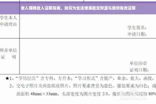 随着人口老龄化趋势的加剧,越来越多的老年人选择摆摊作为一种生活方式或补充家庭收入的方式,摆摊不仅能让老人保持活力,还能在一定程度上增加经济收入,如何提供有效的收入证明,对于老人摆摊来说,是一个需要关注的问题,本文将详细介绍老人摆摊如何提供收入证明,帮助老年人更好地管理自己的经济状况。