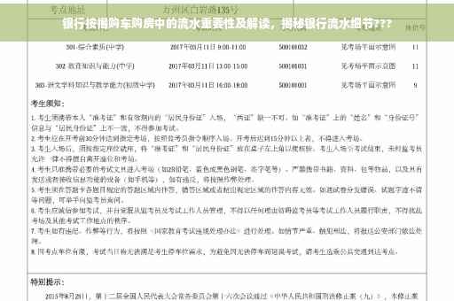 提供有效的银行流水证明是顺利获得银行按揭贷款的关键,申请人应充分了解流水的定义、作用及提供方式,并根据自身情况合理准备和呈现流水证明,以实现购车购房的梦想。