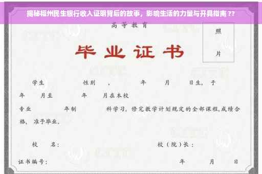 在福州这座充满活力的城市中,民生银行发挥着举足轻重的作用,对于许多生活在这里的人们来说,一份来自福州民生银行的收入证明,往往能为他们的生活带来翻天覆地的变化,本文将深入揭示收入证明背后的故事,以及它是如何在日常生活中产生影响的。