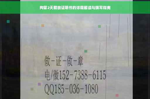 摘要:,,本文将详细介绍拘留2天释放证明书的撰写及相关要点。该证明书是在个人被拘留两天后获得释放时所出具的证明文件。本文将指导读者了解证明书的格式和内容要求,包括被拘留者的基本信息、拘留时间、释放时间等必要信息。通过本文,读者可以了解如何正确填写拘留2天释放证明书,以确保信息的准确性和完整性。