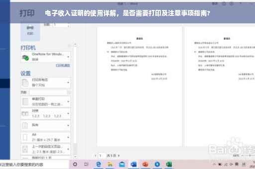 摘要:关于电子收入证明的使用和注意事项,文章指出电子收入证明是否需要打印取决于具体情况。一般情况下,电子收入证明可以作为有效证明使用,但某些场合可能需要打印出来。使用电子收入证明时,应注意保护个人信息,确保其真实性和安全性。文章还介绍了如何打印电子收入证明,提醒读者注意细节,避免出现问题。