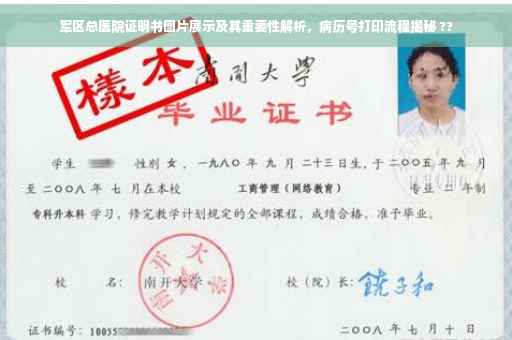摘要:本文将介绍军区总医院证明书图片的展示及其重要性解析,同时简要说明如何打印病历号。通过展示证明书图片,人们可以了解证明书的基本格式和内容,认识到其在医疗证明、法律诉讼等方面的重要性。本文还将指导读者如何正确打印病历号,以便在需要时能够准确快速地获取医疗记录信息。
