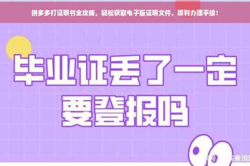 本文介绍了拼多多打证明书的攻略,详细阐述了如何顺利获取所需的证明文件。包括电子版的证明书制作方法和申请流程。读者可以通过本文了解到在拼多多平台上获取证明书的简便方法,解决相关需求。