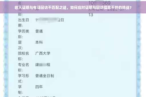 随着互联网的普及和电子商务的飞速发展,自媒体行业日益受到人们的关注,作为一名自媒体作者,我时常面临各种挑战,其中之一便是收入证明与电话回访的不匹配问题,本文将围绕这一主题,深入探讨收入证明与电话回访的重要性,分析产生不匹配的原因,并寻求解决方案。