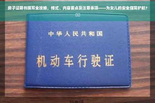 摘要:本指南旨在介绍房子证明书的撰写方式,包括格式、内容要点和注意事项。撰写房子证明书时,需确保清晰明了地呈现房屋信息,如产权归属、房屋地址等。为女儿写证明书时,还需特别注意语言简洁、明确,避免歧义。遵循本指南,将帮助你高效完成房子证明书的撰写。