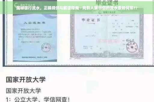 本文通过介绍如何正确提供银行流水以及解读其中的关键信息,帮助读者更好地了解银行流水的作用和价值,在提供银行流水时,需要注意保护隐私、确保保密性、保证完整性、确保真实性和及时更新情况,希望通过本文的介绍,读者能够更好地理解银行流水的重要性,并学会正确提供和解读银行流水。