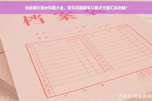 摘要:,,本文旨在汇总出纳银行流水常见问题,并提供详细的解答与解决方案。内容主要包括银行流水的基本概念、常见问题类型、问题解答以及针对这些问题的有效解决方案。通过汇总整理,帮助出纳人员更好地了解银行流水操作中的常见问题,并提供相应的应对措施,提高工作效率和准确性。