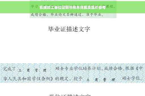 摘要:本文提供了机械加工单位证明书样本的简要描述和样本图片。通过该证明书,可以确认机械加工单位的能力和资质,保证加工质量和效率。样本图片则更直观地展示了证明书的样式和内容,方便使用者了解和参考。该证明书对于机械加工行业的规范和标准化具有重要意义。