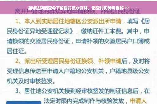 在当今社会,随着法治建设的持续加强,法院在保障社会公平正义方面发挥着至关重要的作用,作为法院行使职权的一种方式,调查令在各类案件的审理过程中得到了广泛应用,某法院因一起案件需要发出调查令,要求银行提供涉案人员的流水信息,这一事件引起了社会各界的广泛关注,本文将围绕这一主题,详细介绍法院调查令下的银行流水知识,帮助公众了解相关法律规定和操作流程。