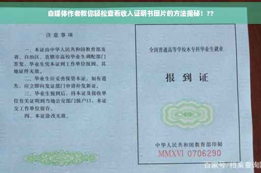 自媒体作者分享如何轻松查看收入证明书图片的方法。想要查看收入证明书图片,可以通过网络平台或社交媒体等途径进行查询。具体方法简单易行,只需按照相关步骤操作即可轻松获取。作者还提醒读者,在查看收入证明书图片时需注意保护个人隐私和信息安全。