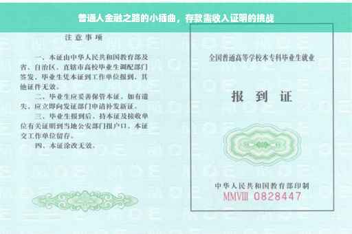 摘要:,,普通人在存钱的道路上遇到了小插曲,前往银行存钱时被要求提供收入证明。这一要求成为金融之路上的一个小挑战,引发了公众的关注。尽管对于大多数人来说,收入证明似乎是一个简单的程序,但它也反映了当前金融环境下对财务透明度的重视。这一插曲提醒我们,在金融领域,即便是看似简单的操作也可能需要遵循一定的规则和程序。