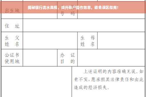 摘要:本文将揭示银行流水制造的真相,指导读者如何避免误区,并正确提升流水账户操作效率。通过深入了解银行流水的重要性,我们将探讨如何合理规划和使用流水账户,避免陷入不当操作的陷阱。本文还将分享一些有效的方法和策略,帮助读者提高流水账户的效率,实现财务目标。