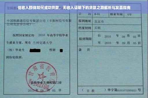 摘要:,,本文将全面解析低收入群体在没有收入证明的情况下如何成功申请贷款。针对这种情况,文章将介绍一些可行的解决方案,包括寻找替代收入证明的方式、选择合适的贷款机构和产品,以及提高贷款成功率的建议。对于想要获得贷款但没有收入证明的人群来说,本文提供了实用的指导和建议。
