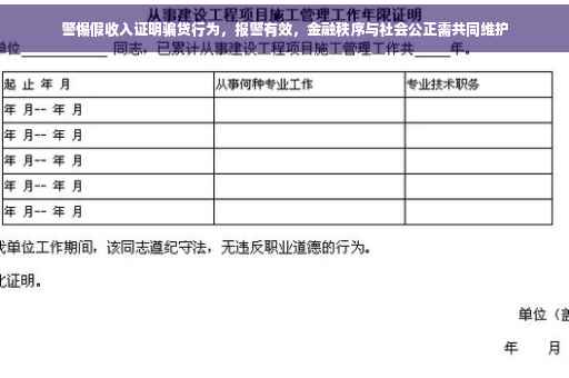 近年来,随着金融市场的快速发展,各种金融产品和服务层出不穷,其中不乏一些人利用虚假收入证明骗贷的行为,这种行为不仅危害了金融机构的合法权益,也破坏了社会的公平和正义,本文将深入探讨假收入证明骗贷现象,并呼吁社会各界共同关注,维护金融秩序和社会公正。