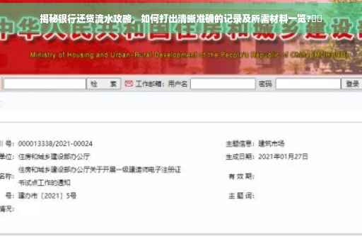 摘要:,,本文将揭秘银行还贷流水的全过程,教你如何打出清晰、准确的还贷流水记录。读者将了解前往银行打印还贷流水所需携带的证件及注意事项。通过本文,读者可以便捷地获取还贷流水信息,轻松掌握打印流程,确保记录准确无误。