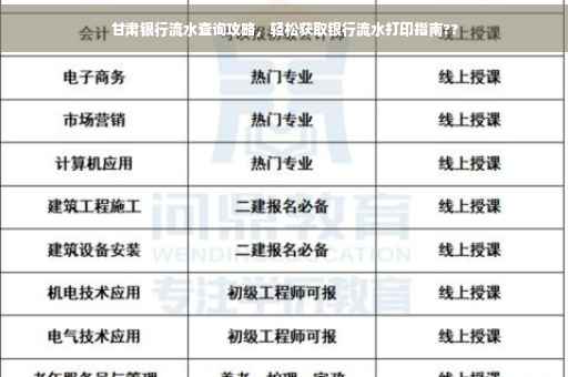 随着互联网的发展,越来越多的人开始关注自己的个人财务管理,银行流水作为记录个人或企业资金往来的重要文件,在办理贷款、信用卡申请、财务审计等方面具有广泛应用,本文将详细介绍甘肃银行流水的查询方法,帮助广大用户轻松获取自己的银行流水。
