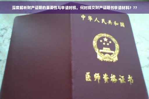 摘要:本文探讨了财产证明书的重要性和申请时机。财产证明书是用于证明个人或企业资产状况的重要文件,在多种场合如贷款申请、合同签订等均需提供。申请财产证明书需准备相关材料,并选择合适的提交时机。本文深度解析了何时提交财产证明书申请材料,帮助读者了解最佳申请时机,以便顺利获取财产证明。