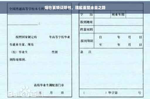 近年来,随着社会观念的不断开放与变迁,离婚现象逐渐受到人们的关注,烟台作为一个美丽的海滨城市,也面临着这一社会现象的挑战,为了更好地理解和关注离婚后的人们,本文将介绍烟台离婚证明书的重要性、办理流程、相关注意事项以及离婚后的积极面对等方面的内容,希望通过这篇文章,让更多的人了解离婚证明书背后的意义与价值,为离婚后的人们提供更多的支持与帮助。