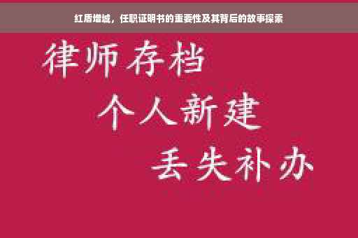 随着社会的不断发展,各行各业对于职务证明文件的重视程度日益加深,红盾增城作为一个重要的地方组织,其任职证明书的重要性更是不可忽视,本文将围绕红盾增城的任职证明书展开讨论,揭示其重要性,以及背后所蕴含的故事,希望通过本文的阐述,能够为广大读者带来启示和帮助。