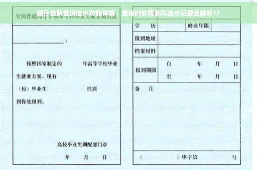 摘要:银行自助查询系统可查看流水记录的时间范围因银行而异。一般而言,近期几个月至几年的交易记录均可查询,但具体时长受银行系统更新和存储空间的限制。本文深度解析银行流水查询功能,探讨其时长限制及相关注意事项,帮助用户有效利用自助查询系统了解账户交易情况。