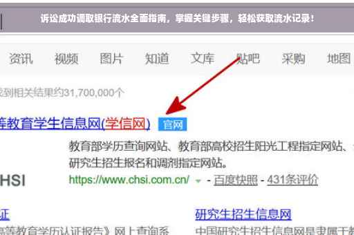 本指南旨在为诉讼中如何成功调取银行流水提供详尽的信息和帮助,在实际操作中,请遵循相关法律法规,如有疑问,请咨询专业律师。