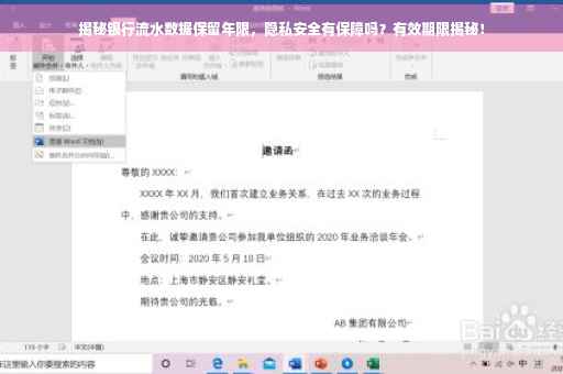 随着互联网技术的快速发展,银行业务逐渐实现了线上办理,极大方便了我们的日常生活,这也引发了一系列关于个人信息保护的问题,银行流水作为个人经济活动的重要记录,其保留时间以及隐私保护问题备受关注,本文将详细介绍银行流水数据的保留年限及相关问题,帮助大家更好地了解银行流水的隐私安全。