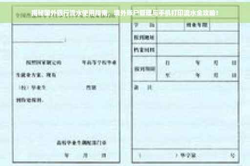 摘要:本指南将向你揭示如何高效利用与管理国外银行账户,包括如何使用手机打印银行流水。通过了解银行流水的功能和使用场景,你将更好地掌控境外财务。本文将教你如何轻松操作,以便你随时掌握账户动态,实现境外资产的有效管理。