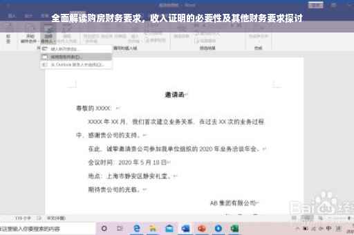 购房过程中的财务要求因具体情况而异,购房者应根据自身情况提前了解并准备好相关证明材料,对于收入证明,购房者需确保其真实性和完整性,并了解其他购房财务要求,以确保购房过程的顺利进行,如有更多疑问或需要深入了解,建议咨询专业人士或相关部门。