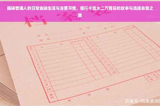 随着现代社会的飞速发展,银行卡已深入我们生活的每一个角落,成为日常生活中不可或缺的一部分,你是否曾仔细研究过自己的银行卡流水?每一笔交易背后,都反映了怎样的消费观念和生活状态呢?本文将围绕银行卡流水二万这一数字,深入解读普通人的日常金融生活及消费习惯。