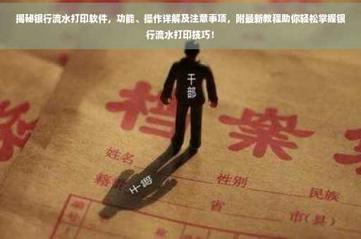 随着互联网的普及和金融科技的发展,银行业务逐渐从线下向线上转移,网上银行服务因其便捷性受到越来越多人的青睐,银行流水打印是许多人在办理贷款、信用卡等金融业务时的必要步骤,为了简化这一流程,各大银行纷纷推出了流水打印软件,本文将全面介绍银行流水打印软件的功能、操作及注意事项,并附以某银行的详细教程,帮助大家更好地使用该软件。