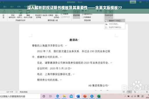 随着全球化的不断发展,跨国企业和国际交流日益频繁,职权证明书(Authorization Certificate)的重要性愈发凸显,无论是在商业合作、项目管理还是日常工作中,一份规范、准确的职权证明书都能为我们提供有力的支持,确保我们的权益得到保障,本文将详细介绍职权证明书模板的内容及其重要性,帮助读者更好地理解和应用。