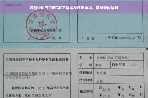 诊断证明书在医疗领域中具有极高的重要性,它详细记录了患者的疾病诊断、治疗方案以及医生的建议和注意事项等信息,有时,我们会在诊断证明书中看到“华”字,这可能让患者及其家属产生困惑,本文将围绕诊断证明书中的“华”字进行深入解读,帮助患者及家属理解其含义,并强调在处理诊断证明书时需要注意的事项。