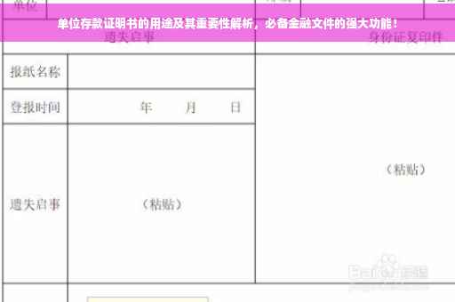 单位存款证明书是由银行或其他金融机构出具的一种证明文件,其核心目的是证明某一单位在特定时间内的账户存款余额,这份文件通常详细列明单位名称、账户号码、存款余额以及存款期限等关键信息。