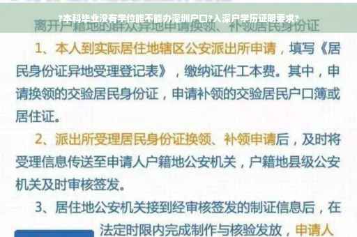 本科毕业没有学位是可以办深圳户口的。只要是全日制本科毕业就可以办理深圳户口。办深圳户口,学历只是一方面,其次还需要交一定时间的社保或者满足其他条件。