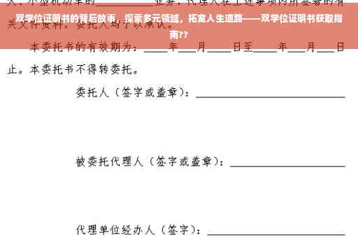 双学位证明书是指一个人在完成学业时,同时获得两个不同学科的学士学位证书,通过攻读双学位,学生可以在多个领域获得知识和技能,提高自己的综合素质和竞争力,双学位证明书的出现,反映了现代社会对多元化、复合型人才的需求,同时也体现了个人对自我挑战和全面发展的追求。