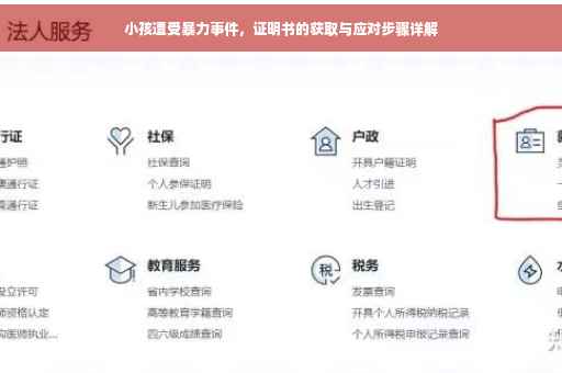 摘要:当小孩遭受暴力事件时,取得证明书是重要的一步,有助于后续的法律程序和维权。家长或监护人应首先报警并保存相关证据,如医疗记录、证人证言等。随后,可联系当地公安机关或妇女儿童保护机构,申请出具伤害证明。咨询律师以获取专业法律建议,确保孩子的权益得到保障。应对暴力事件,需多方面合作,确保孩子安全。