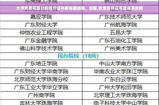 还有省级国家级比赛证书 多关注网上的一些活动,会有一些加分证书,我在网上考过环保知识和关于艾滋病的考试,及格就有证书可以加分。职业资格证书由人力资源社会保障部统一印制,鉴定实施部门(地方鉴定中心或行业、企业鉴定机构)盖章生效,可在人社部“国家职业资格证书全国联网查询”网页中查询(网址:zscx.osta.org.cn)。