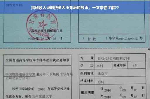 摘要:本文揭秘了收入证明纸张大小背后的故事。文章详细阐述了收入证明纸张大小的标准规定及其重要性,同时探讨了不同纸张大小可能带来的问题。通过了解纸张大小的要求,读者可以更好地理解收入证明的真实性和规范性。文章简洁明了,重点突出,旨在为读者提供有价值的信息。