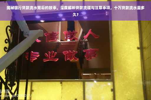 摘要:本文将揭示银行贷款流水十万背后的故事,深度解析贷款流程,包括申请、审核、放款等环节。本文还将介绍贷款注意事项,帮助借款人避免陷阱,顺利获得贷款。关于贷款流水十万要多久的问题,文中也将给出解答,提醒借款人注意时间成本。本文旨在帮助读者更好地了解银行贷款流程,顺利解决资金问题。