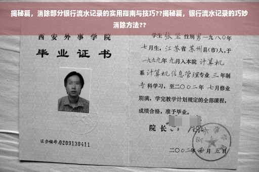 摘要:本篇实用指南教你如何巧妙消除部分银行流水记录。通过合法合规的方式,你可以有效管理你的银行流水,保护个人隐私和企业机密。本文将介绍一些简单实用的方法,帮助你轻松消除不必要的银行流水,让你的财务记录更加清晰简洁。操作需谨慎,确保遵守相关法律法规。