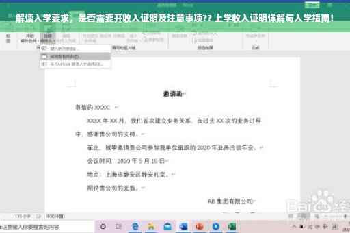 随着社会的不断发展,教育已成为人们生活中不可或缺的一部分,无论是义务教育还是高等教育,入学过程中总会遇到各种手续和要求,收入证明是常见的一种材料要求,上学真的需要开收入证明吗?本文将围绕这一主题展开讨论,并为您详细解读入学过程中的相关要求与注意事项。