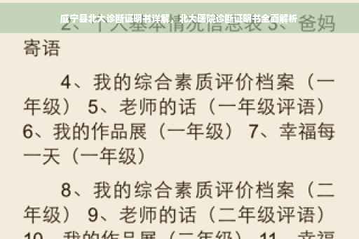 摘要:本文将对威宁县北大医院的诊断证明书进行深度解析。通过详细介绍诊断证明书的构成,包括患者信息、诊断结果、医生建议等内容,帮助读者了解诊断证明书的真实含义和重要性。本文还将探讨诊断证明书在医疗领域的作用,以及患者如何正确使用和理解诊断证明书。