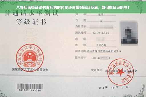 随着社会的快速发展,时代的变迁,八零后一代的婚姻状况逐渐成为了人们关注的焦点,近年来,离婚率不断攀升,许多八零后夫妻最终选择了分手,本文将围绕八零后离婚证明书这一主题,探讨时代变迁下婚姻现状及其背后的原因,同时提出一些思考和建议。